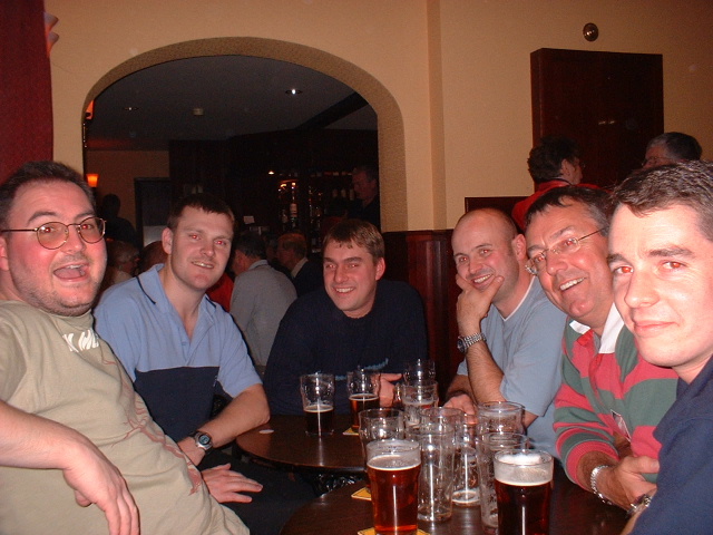 Friday night in the pub. All arrived safely. Beer flowing nicely. (Oops! I forgot to switch on the red-eye reduction!)