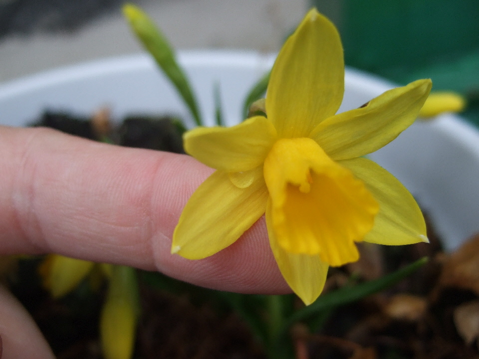 And now a short quiz:- Which is bigger ... ... a dwarf daffodil (from the front porch of our cottage) ...
