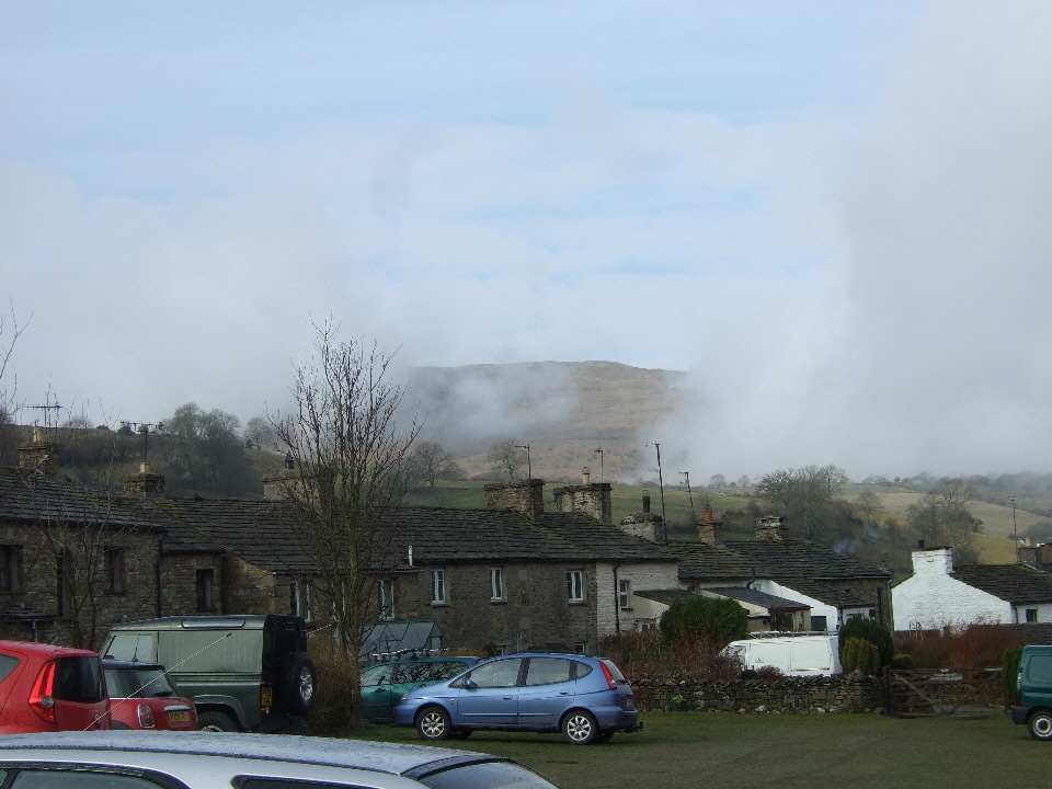 Dave kindly offers to keep Barrie company whilst the remaining five pile into Tim's car and drive to Dent. Dave staying behind was NOT a shock but the price of the car park certainly was! A gap appears in the mysterious low cloud, revealing a distant hill Early lambs A warning Root tunnel One tree or two? Lime kiln