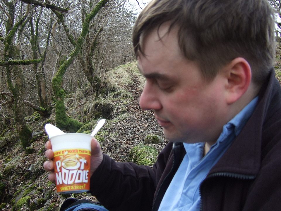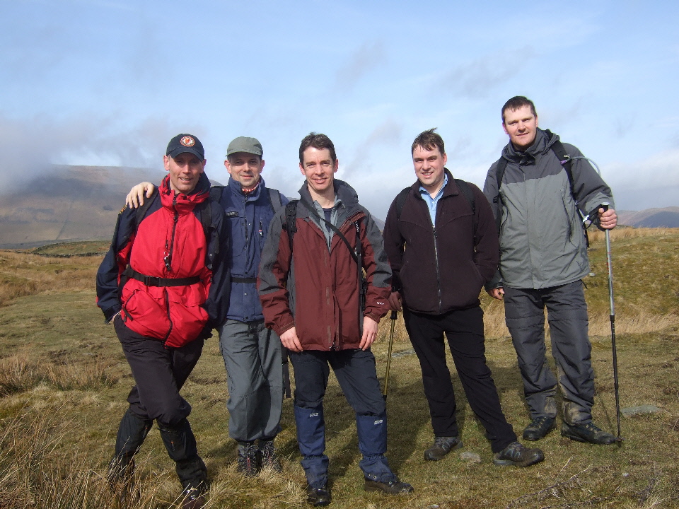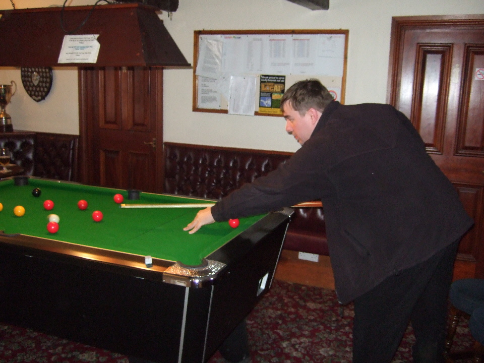 At this point Simon unfortunately managed to turn his ankle over and felt it wise to turn back. Charlie kindly offered to accompany him back down. New walking socks for Pete? Piercy Pot Noodle Pic Balanced Success for the Summit Group Meanwhile, Charlie and Peg-Leg Piercy meet up with Barrie and Dave and head for The Dent Brewery Tap (The George & The Dragon) Barrie proceeds to try one pint of every real ale pump along the bar! Simon manages to hobble round the pool table The Usual Suspects
