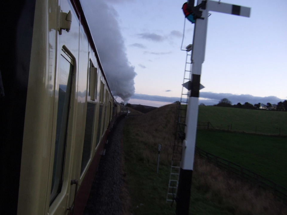 Lulled to sleep by the "diddly-dum, diddly-dees" Levisham Station Steve's bent finger - it may get less bent over time. Preparing for another slap-up meal at The Horseshoe Inn. Levisham Moor, via Hole of Horcum