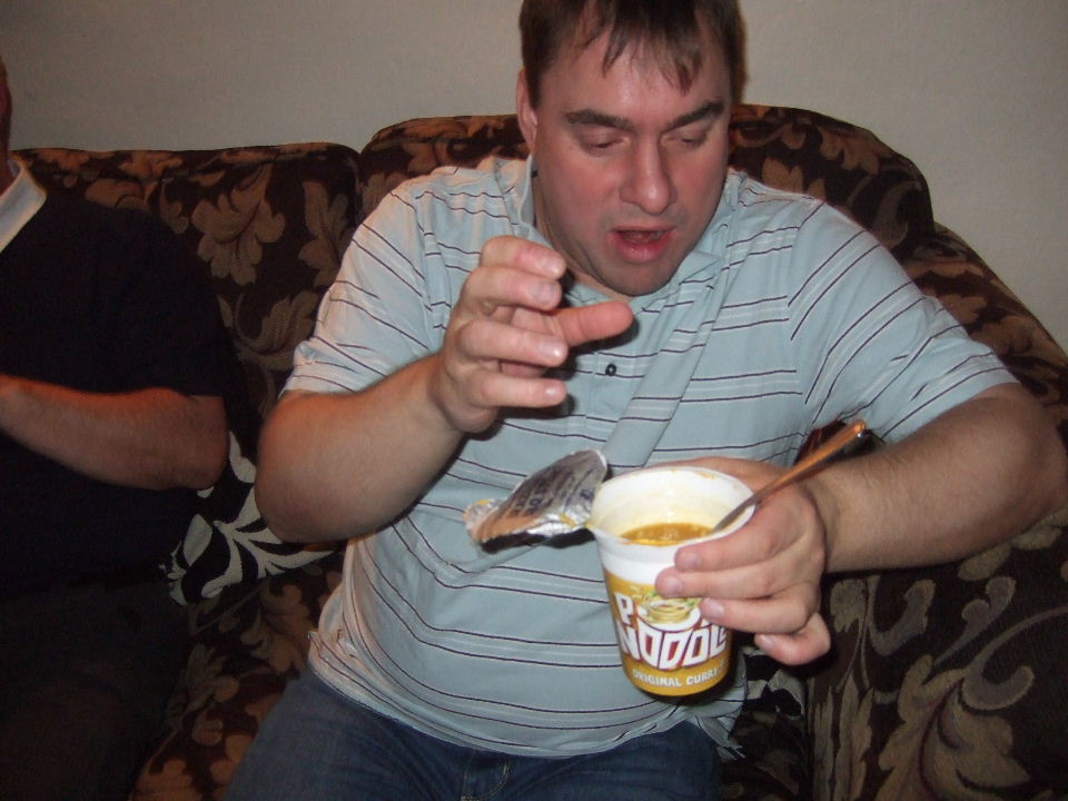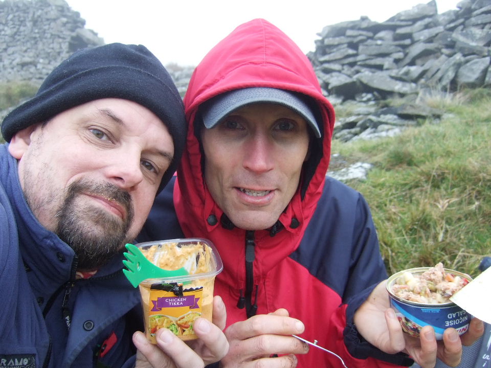 We get back and eat a late lunch in the warm and dry. Here is a rare thing - an indoor Piercy Pot Noodle Pic. Not sure what Simon is doing here
