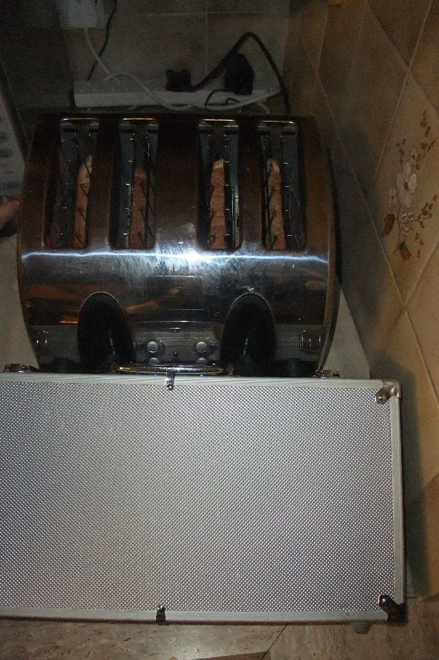 The four-slice toaster wouldn't stay down but Steve improvised with the use of Charlie's poker chip case