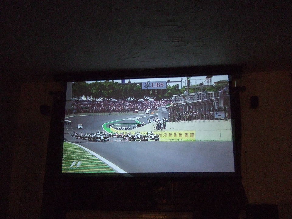At this point we say goodbye to Barrie and Pete and then head to the pub. We have a meal and are about to head back to watch the Grand Prix but then young Chris from the bar puts it on the big screen, for our very own private showing!