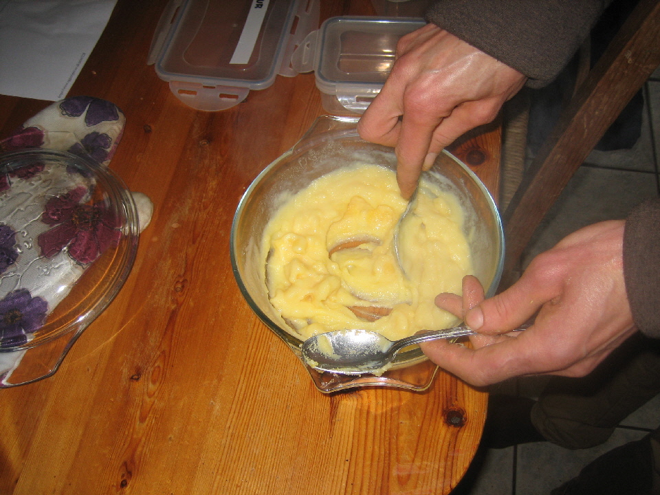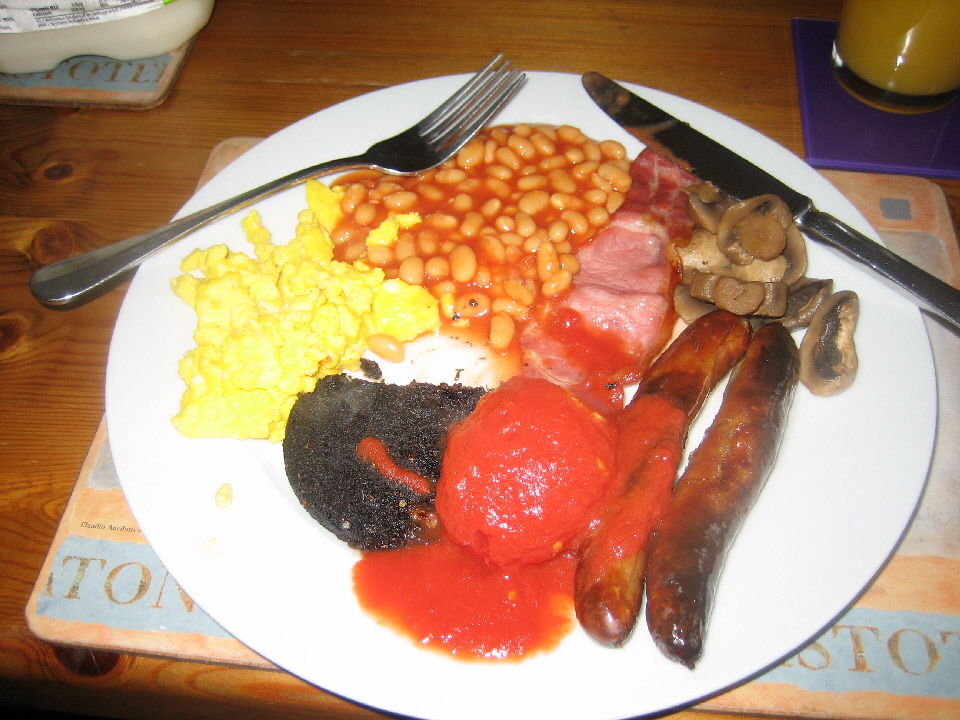 Pete's breakfast includes Dave's butcher's choice sausages and black pudding - also Steve's scrambled eggs made from the local farm free range chicken eggs