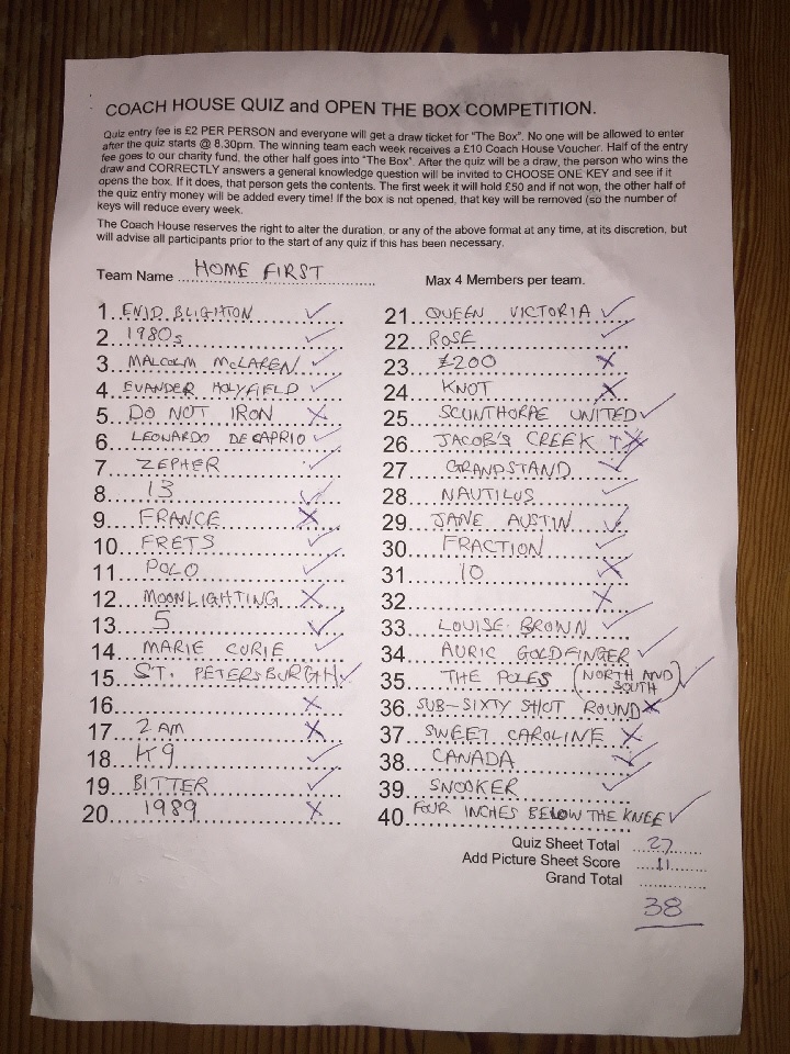 We go to The Coach House Inn for a meal and the pub quiz ...