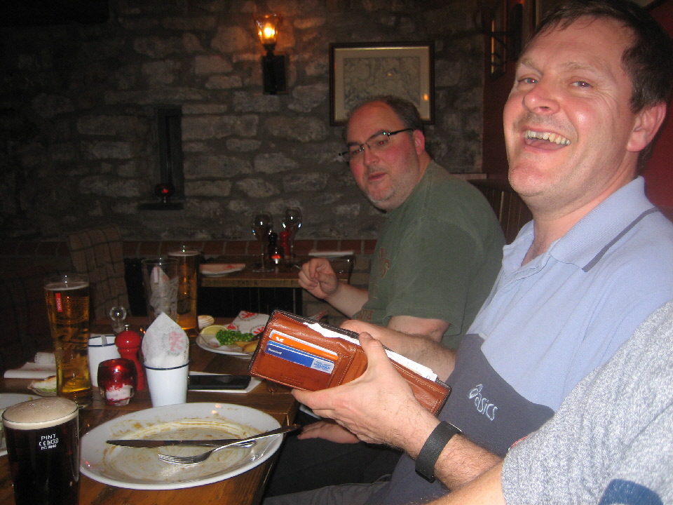 A rare photo of Pete actually spending money on the rest of us, from his once mythical wallet - he bought a round of drinks to say thanks for letting him have a free holiday with his family earlier in the year, at Rosedale Abbey