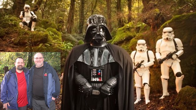 Two of us are very excited to be in the same spot as a certain dark lord and his troopers!