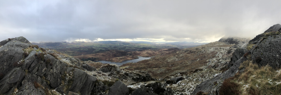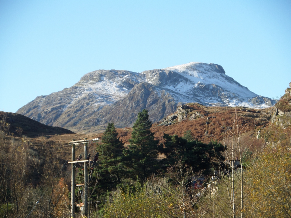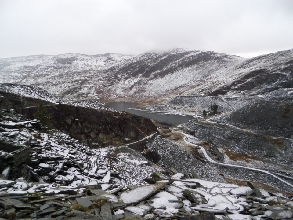 A glorius morning with not a cloud in the sky ... but still plenty of snow on the Snowdonia peaks