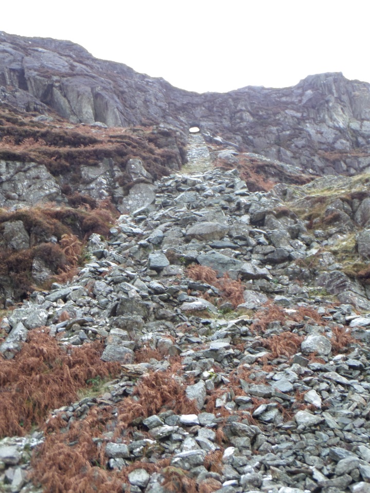 We then embark on climbing up a steep ex-minecart slope, aiming for a tunnel through the mountainside