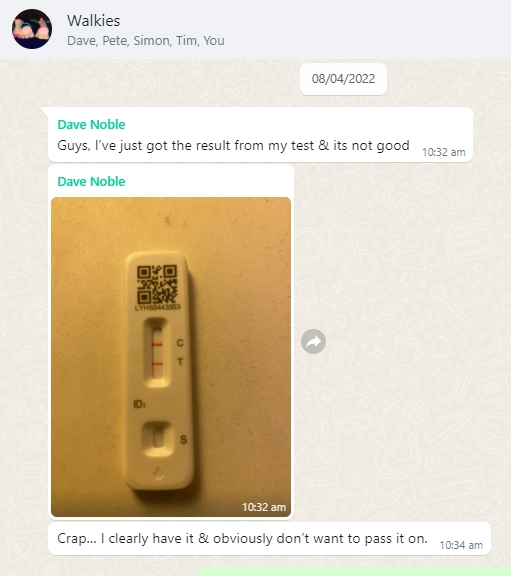 Dave was absolutely gutted to have to stay home and we were all sad, too. We wished him well and said we would drink to his health.