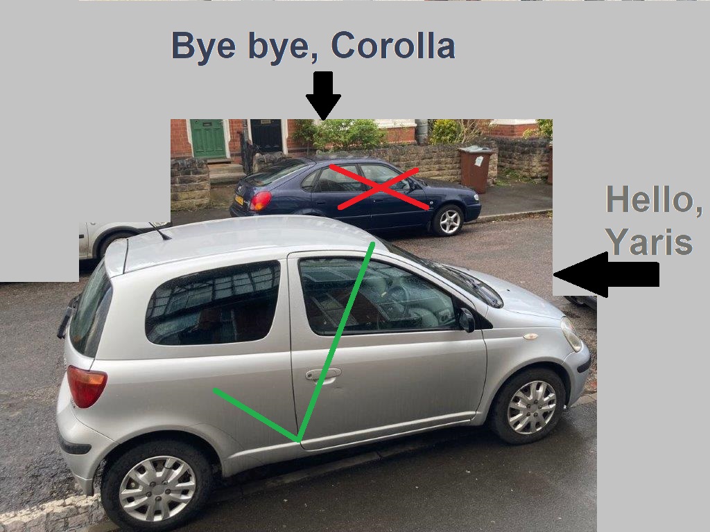 Before setting off, Charlie had to say goodbye to his faithful Toyota Corolla. It was being picked-up for scrap and he was getting used to its replacement, the Toyota Yaris.