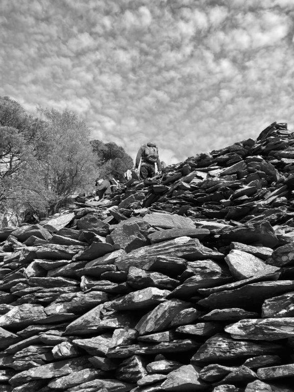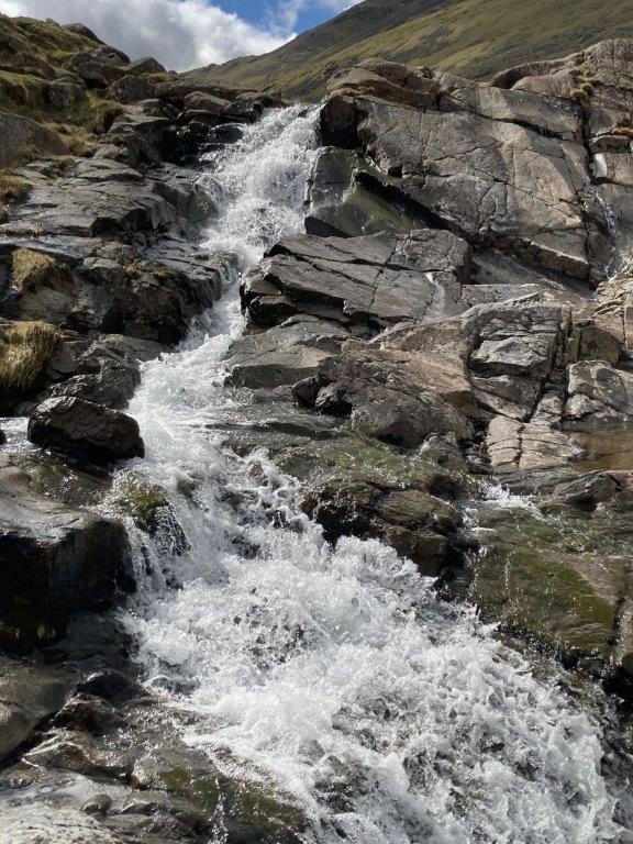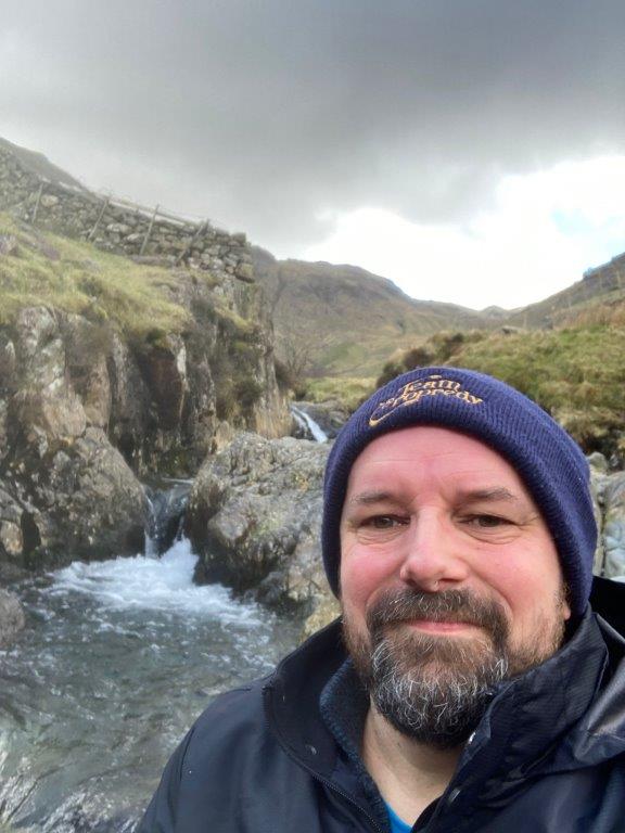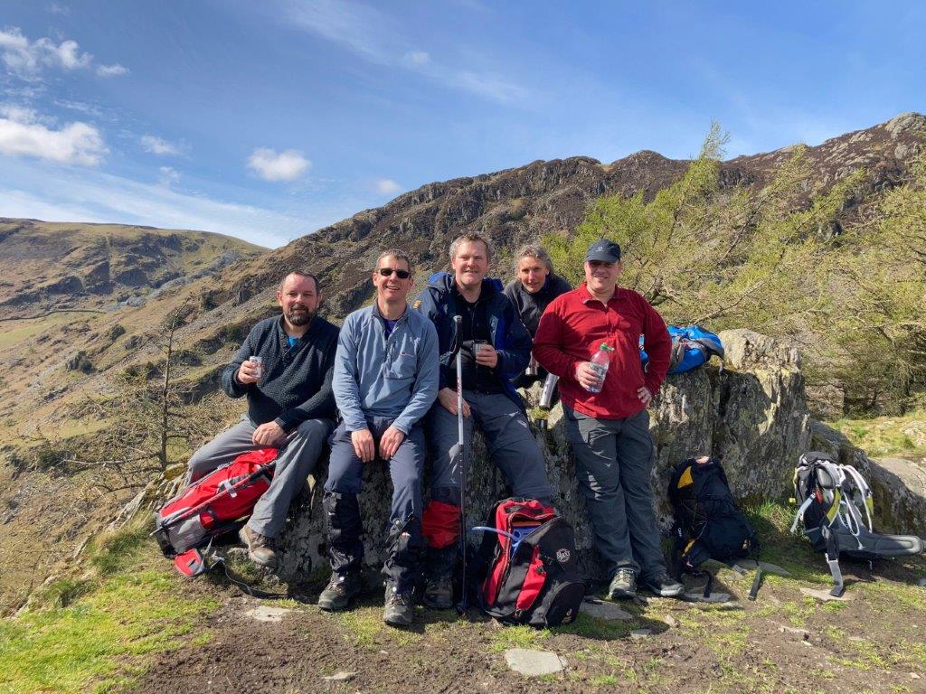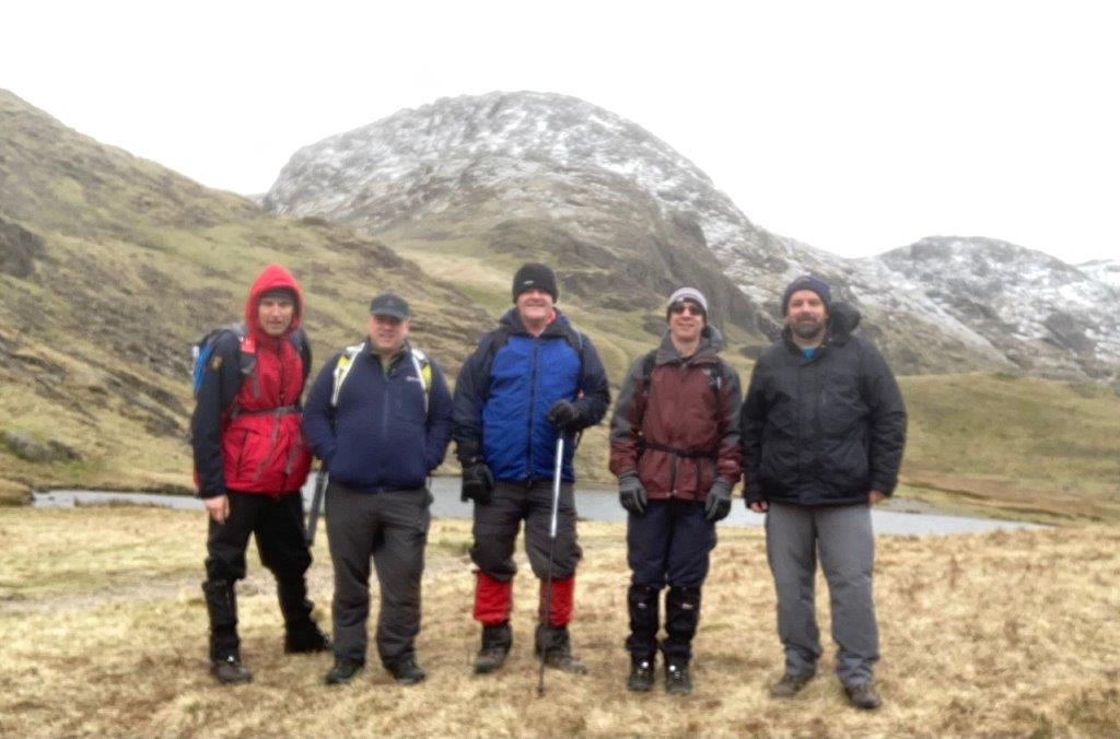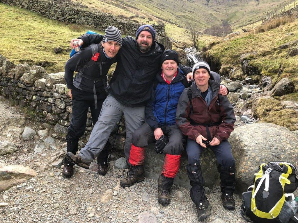We reach Styhead Tarn. Charlie decides he's not going to make it to the summit and Simon kindly decides to accompany him on a bumble back down. Before the others continue up, time for a slightly out-of-focus group shot.