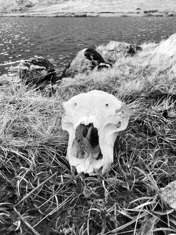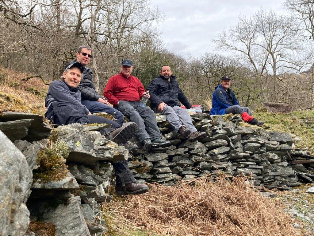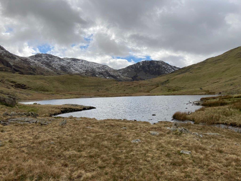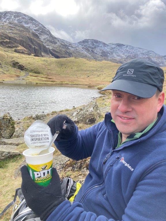 As the summit group stride away, Charlie & Simon stop for lunch by the tarn.