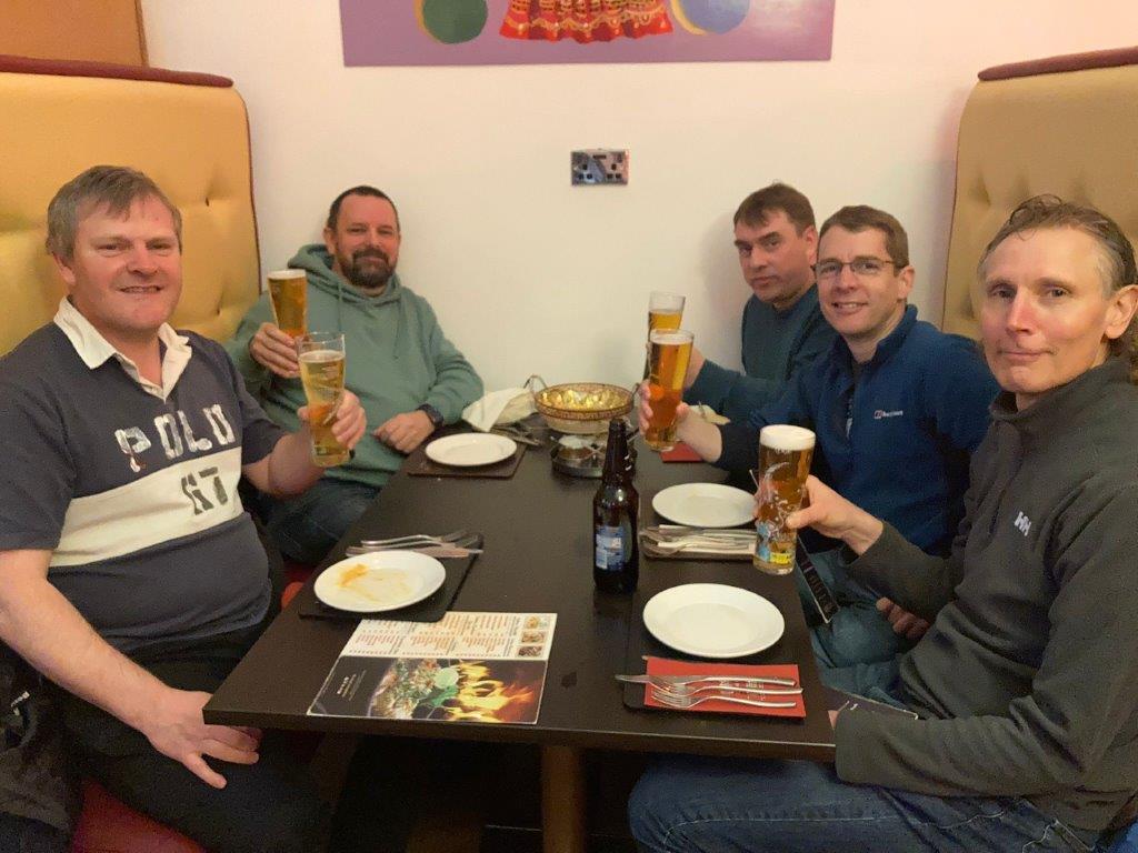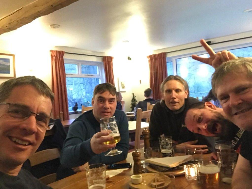We have a cracking night and send this selfie to our absent friend, Dave - before retiring to the bar for more beer and shorts, until chucking-out time.
