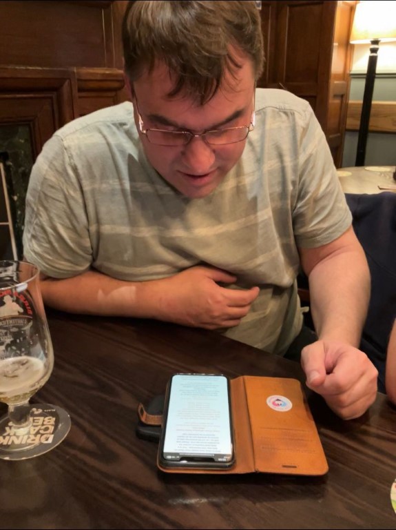 Pete & Charlie were keeping a live-update-eye on the cricket score, which ended well ...