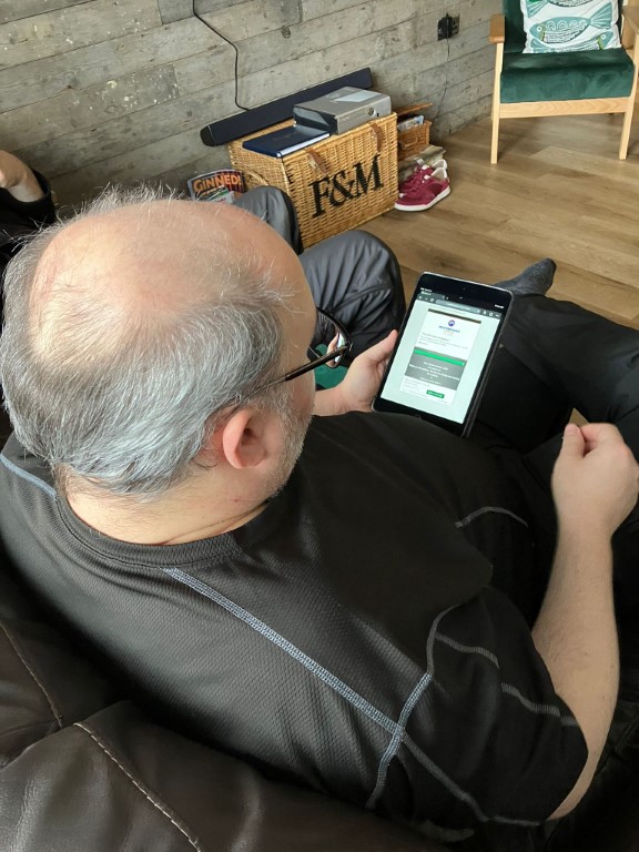 Simon had a bad back and so decided to stay behind ... but made use of his time by continuing the ticketting task (with eventual success!)