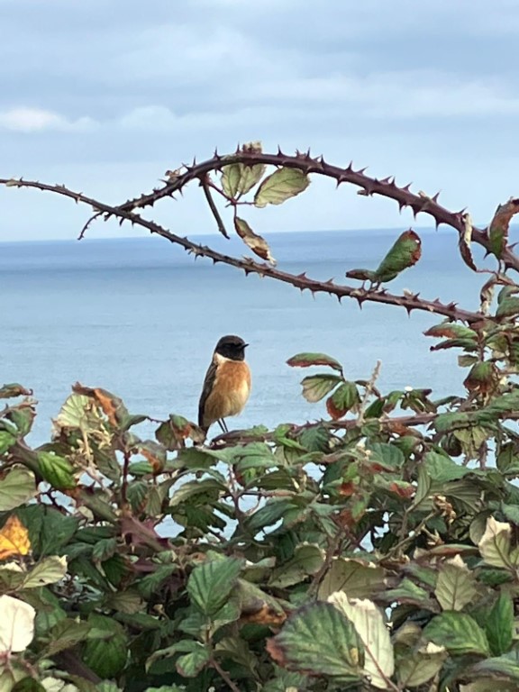 Charlie spots a stonechat.