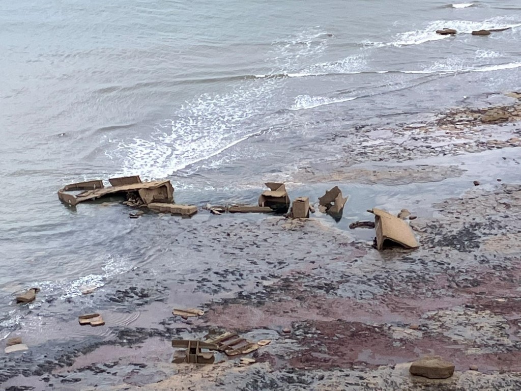 We ponder what it is we see in the shallows... could it really be the wreck of a concrete ship hull? Well, yes it can!