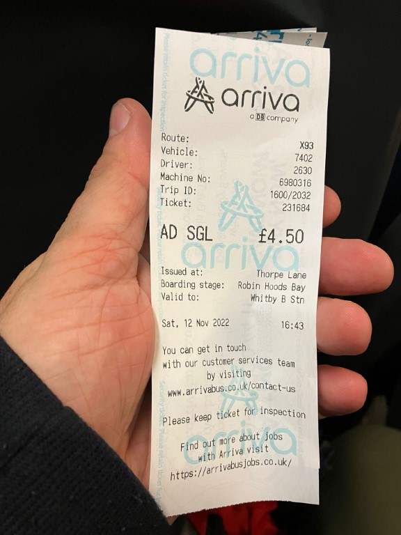 We get the bus back to Whitby.