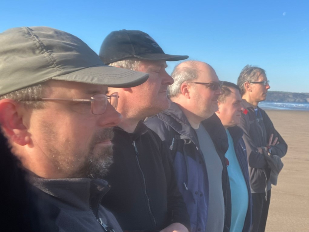 We find a quietish stretch of beach to stop for our traditional two minute's silence.