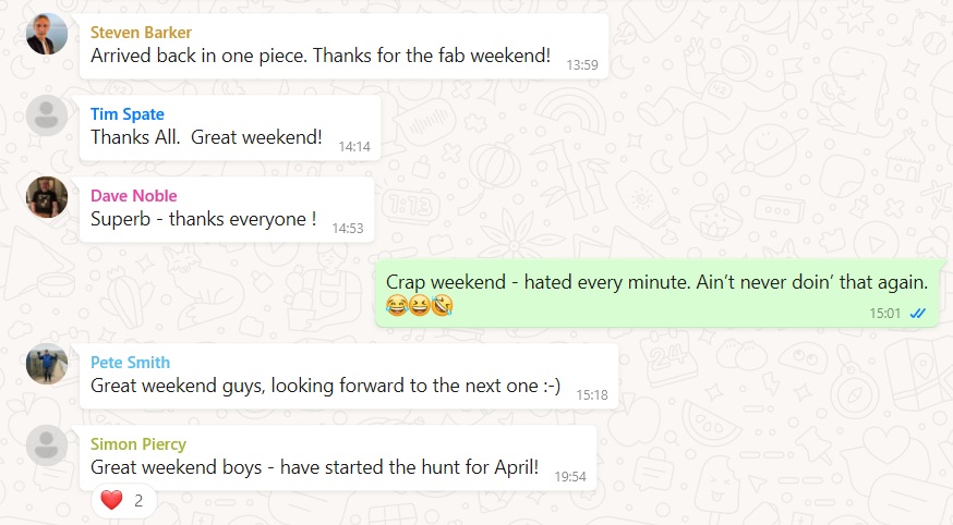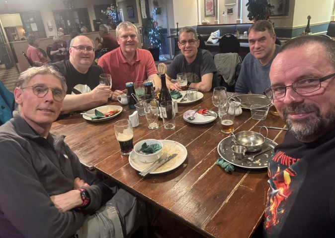 The B-Team makes it back first and, as the daylight faded, the A-Team got back having bagged the remaining mosaics. After freshening-up, Simon takes the fish & chips order from us all ... which turned-out to be really quite finicky