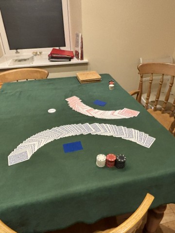 After heading back to the cottage for tea and toast & cheese, Simon & Charlie prepare for the start of their usual weekend poker sessions.