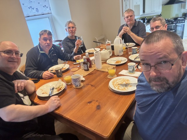 On a beautiful morning, we have "finish-whatever-is-left" breakfast cobs before packing-up and vacating the cottage.