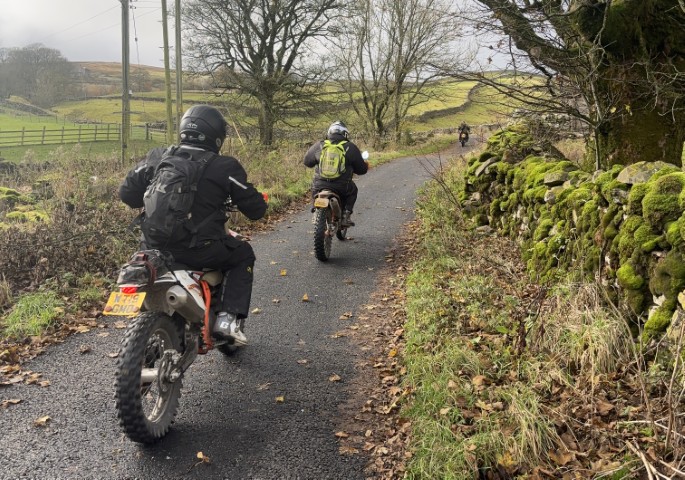 We heard a motorbike and then stood aside as 7 trials bikes roared past