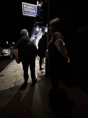 We had heard that the chippy was good and this was borne-out by the sight that greeted Simon & Charlie when they went to get the food - queueing out the door