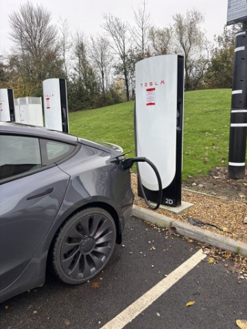 Charlie and Simon meet at Tim's and set-off in the Tesla. They stop in Leeds, at a location that has food for the car, food for the boys and food for the weekend ...